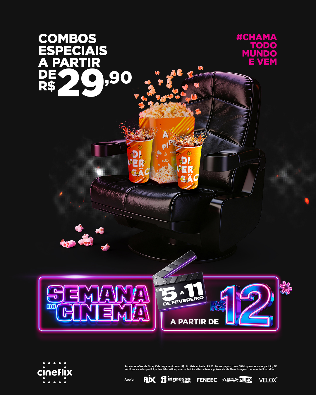 Após o término dos ingressos cortesia, demais famílias e acompanhantes poderão ser adquiri-los diretamente na bilheteria ou nos totens de autoatendimento do cinema (valores seguem as políticas dos cinemas).