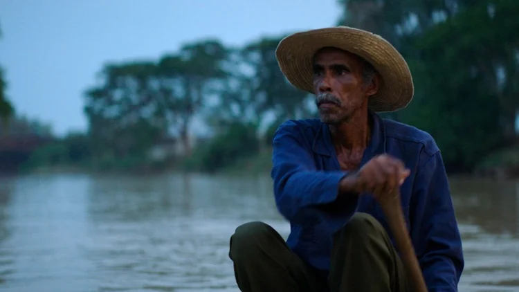 O pescador José atravessa o rio Magdalena, o maior da Colômbia, em
