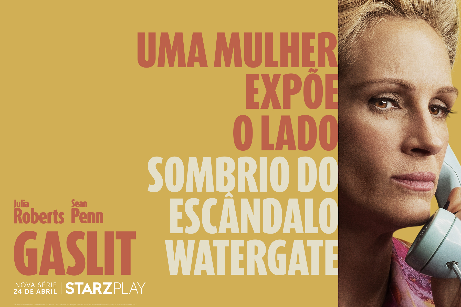 A série limitada Gaslit, estrelada por Julia Roberts e Sean Penn, estreia neste domingo, 24 de abril, na STARZPLAY, a plataforma de streaming internacional da STARZ. Inspirada em fatos reais, a produção é