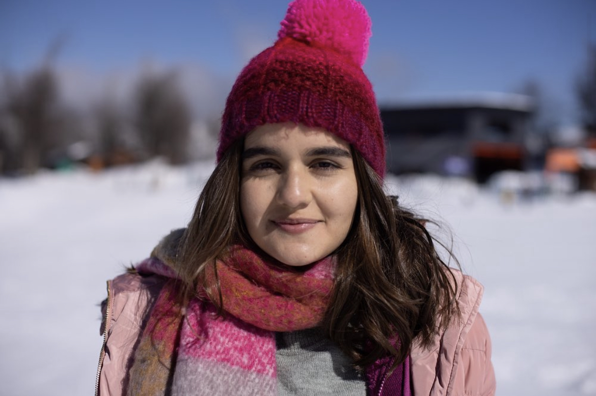 viajando a contragosto com seus pais para uma estação de esqui, no