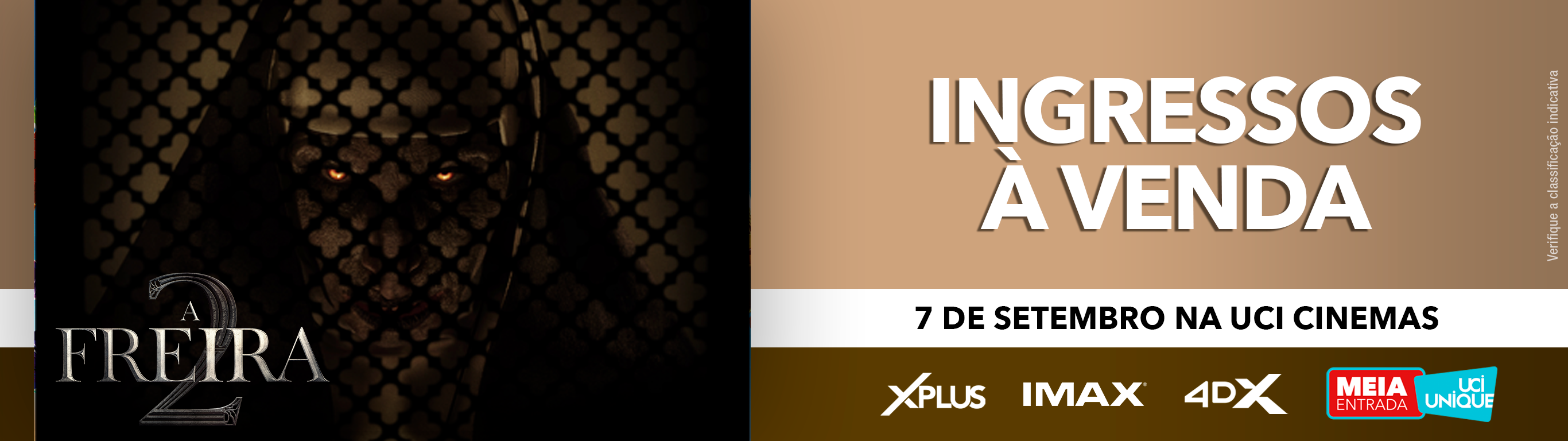 As cenas de “A Freira 2” ficam ainda mais aterrorizantes nas salas especiais da UCI, que fazem o espectador se sentir dentro do filme. As sessões em XPLUS contam com o sistema Dolby Atmos, que cria a ilusão de um campo de som infinito 360 graus, com 54 caixas de som espalhadas pela sala, inclusive no teto. Nas 4DX, as cadeiras vibram e se mexem, com efeitos de vento, neblina e luzes. Nas DE LUX, os clientes contam com poltronas reclináveis eletronicamente, chaises longues, mesas e serviços exclusivos. E nas IMAX, a proporção estendida da tela gigante - quatro vezes maior que a de projeção digital comum - gera imagens com mais brilho, nitidez e profundidade.