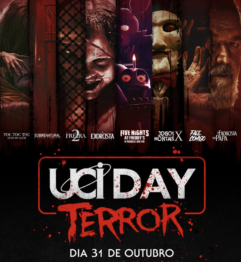 O terror chegou com tudo na UCI e, para comemorar o Halloween, a rede preparou o UCI Day Terror, com uma programação pra lá de aterrorizante! No dia 31 de Outubro, os cinemas de todo o país se transformarão em uma festa de Halloween e serão invadidos por uma seleção imperdível com oito filmes do gênero a preços especiais, além de um combo temático, sorteio de livros e ingressos extras para as melhores fantasias. Os longas escolhidos para a data são "A Freira 2", "Jogos Mortais X", "Sobrenatural: A Porta Vermelha", "Toc Toc Toc - Ecos do Além", "O Exorcista do Papa", "Fale Comigo", além de "Five Nights at Freddy's - O Pesadelo Sem Fim" e "O Exorcista: O Devoto". Os ingressos já estão à venda com preços entre R$ 8,00 a meia e R$ 16,00 a inteira.*
