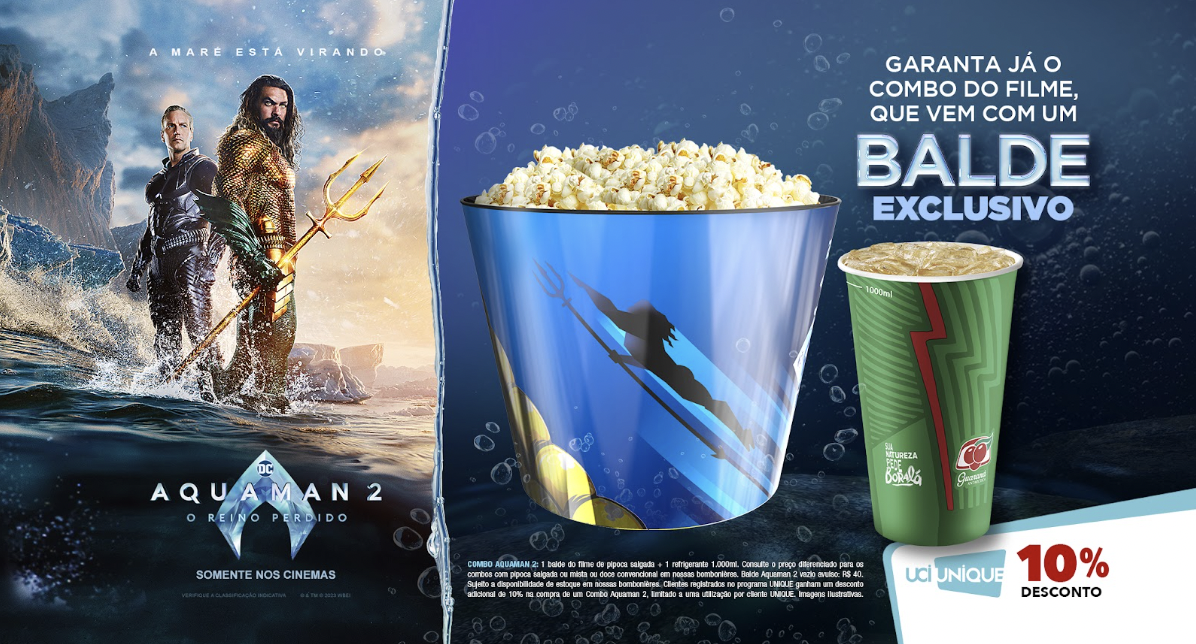 As cenas do filme ficam ainda mais emocionantes nas salas especiais da UCI, que fazem o espectador se sentir dentro da produção. O longa foi filmado com câmeras ARRI Alexa Mini LF certificadas da IMAX, com todo o filme captado com proporção expandida exclusiva IMAX – apresentando mais imagem ao longo do filme. Combinado com o som de precisão IMAX de última geração, o público terá uma experiência verdadeiramente espetacular e imersiva. Além de mais imagem, "Aquaman 2: O Reino Perdido" foi remasterizado digitalmente na qualidade de imagem e som do The IMAX Experience®, tornando-o a melhor experiência de cinema. As sessões em XPLUS contam com o sistema Dolby Atmos, que cria a ilusão de um campo de som infinito 360 graus, com 54 caixas de som espalhadas pela sala, inclusive no teto. Nas 4DX, as cadeiras vibram e se mexem, com efeitos de vento, neblina e luzes. Nas DE LUX, os clientes contam com poltronas reclináveis eletronicamente, chaises longues, mesas e serviços exclusivos.